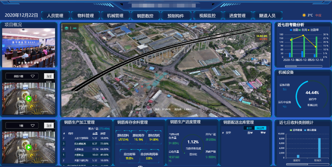 數(shù)字基建現(xiàn)場(chǎng)智慧管控平臺(tái)借助物聯(lián)網(wǎng)、云計(jì)算、大數(shù)據(jù)、VR/AR多媒體、北斗定位、區(qū)塊鏈等技術(shù),以提升工程建設(shè)安全和質(zhì)量為重點(diǎn),以“信息系統(tǒng)服務(wù)于管理提升與效率”為建設(shè)原則,以自有平臺(tái)為技術(shù)架構(gòu)核心,融合BIM+GIS及物聯(lián)網(wǎng)平臺(tái),推進(jìn)基于BIM技術(shù)為支撐的三維設(shè)計(jì)、工程管控,實(shí)現(xiàn)對(duì)設(shè)計(jì)、施工、進(jìn)度、質(zhì)量、安全等各環(huán)節(jié)工作過(guò)程數(shù)據(jù)的深度融合和一體化展示;同時(shí)與人員、機(jī)械、車(chē)輛、物資、工法、環(huán)境等業(yè)務(wù)相結(jié)合,實(shí)現(xiàn)工程全過(guò)程的數(shù)據(jù)自動(dòng)采集、智能分析及智能預(yù)警;通過(guò)人機(jī)交互、感知、決策、執(zhí)行和反饋,客觀分析施工場(chǎng)域的進(jìn)度、安全、質(zhì)量及風(fēng)險(xiǎn)等的特征和規(guī)律,將虛擬的業(yè)務(wù)系統(tǒng)與真實(shí)世界的場(chǎng)景深度融合,實(shí)現(xiàn)“施工現(xiàn)場(chǎng)全面感知”、“工程建設(shè)綜合指揮”、“工程BIM全生命周期管控”、“安全教育沉浸體驗(yàn)”的建設(shè)目標(biāo),全面實(shí)現(xiàn)施工現(xiàn)場(chǎng)的管理智慧化、生產(chǎn)智慧化、監(jiān)控智慧化和服務(wù)智慧化。
